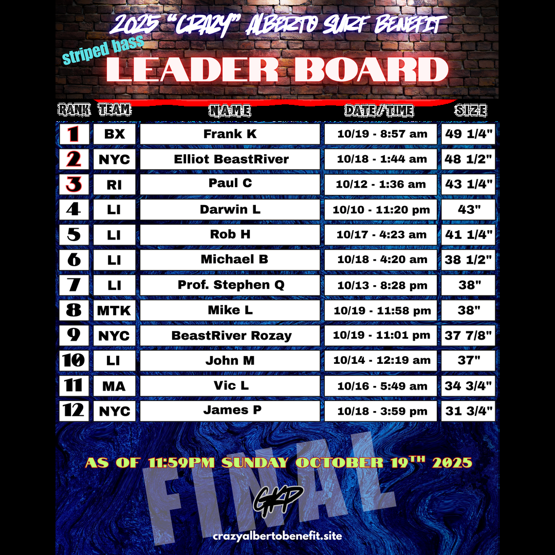 • 3rd place - 50.00 Captree B&T gift card, NLBN lure pack, 2 SIGNED Books by Alan Battista, Tournament shirt + More To be Announced