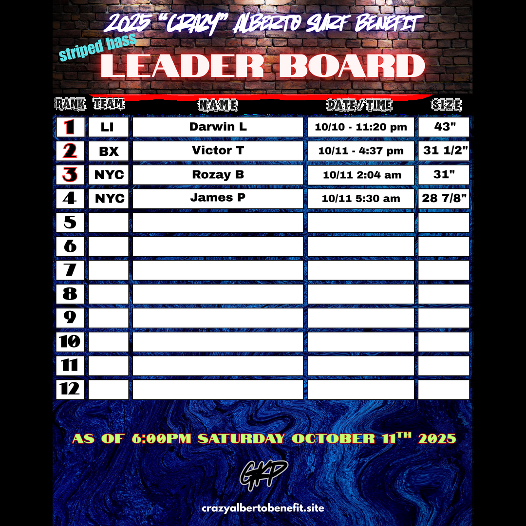 Entry fee is 25.00 per angler and all proceeds will go to Crazy Alberto